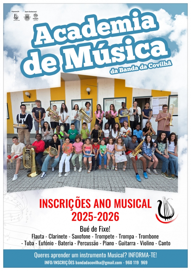 A Academia de Música da Banda da Covilhã abriu esta semana as pré-inscrições para o ano musical 2025/2026. Com uma equipa de professores experientes, a Academia de Música da Banda da Covilhã que atualmente conta com mais de uma centena de alunos, assegura um ensino de qualidade para todos os que queiram aprender um instrumento musical.
