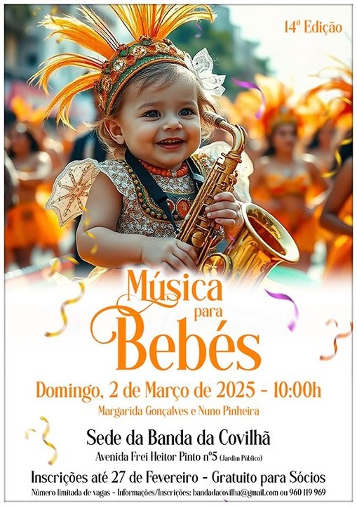Num espírito carnavalesco, convidamos os participantes a virem mascarados, tornando este momento ainda mais especial e divertido. Entre melodias suaves e ritmos alegres, os bebés poderão explorar a música de forma lúdica e envolvente. As inscrições são limitadas e podem ser feitas através dos contactos da Banda da Covilhã. Não perca esta oportunidade de proporcionar uma experiência inesquecível ao seu bebé!
