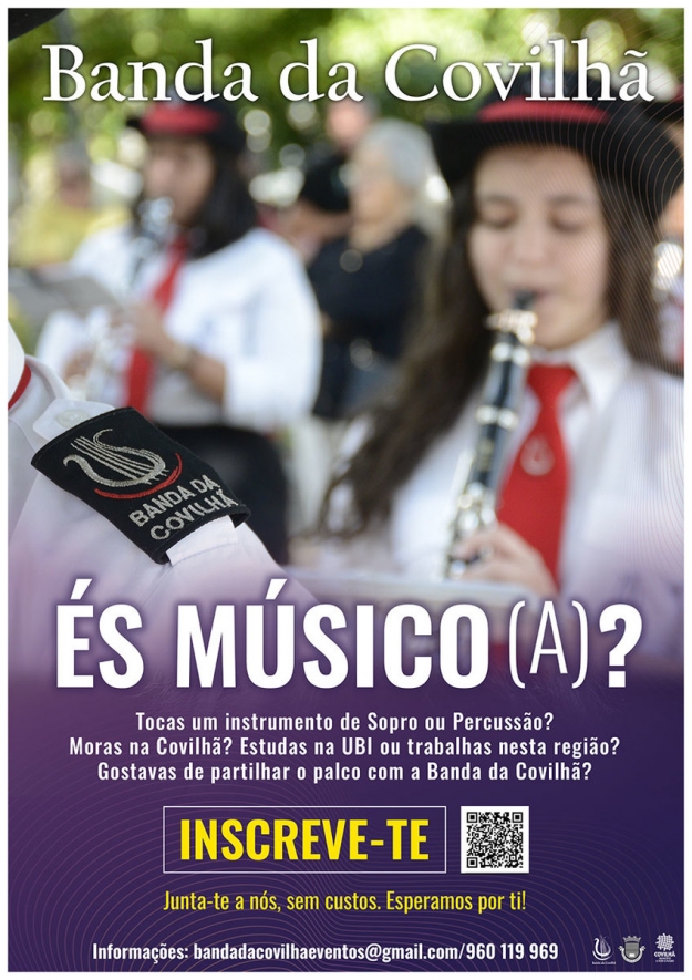 A Banda da Covilhã convida, assim, todos os músicos de instrumentos de sopros e percussão a juntarem-se à sua formação e a contribuírem para o dinamismo cultural da cidade.