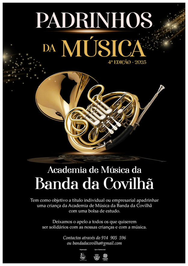 A Banda da Covilhã tem o prazer de anunciar o lançamento da 4ª edição dos Padrinhos da Música, um programa de apoio financeiro que, ao longo dos últimos três anos, já beneficiou dezenas de crianças da Academia de Música da associação.