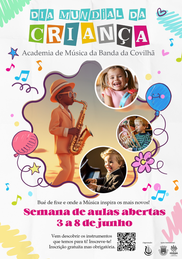 Está a chegar o Dia Mundial da Criança e para o celebrar vamos ter uma semana inteira de aulas abertas na nossa Academia de Música. Inscreve-te e vem descobrir os instrumentos musicais que temos para ti, vai ser muito divertido!