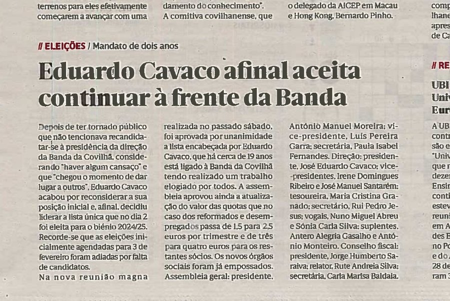 Eduardo Cavaco afinal aceita continuar à frente da Banda