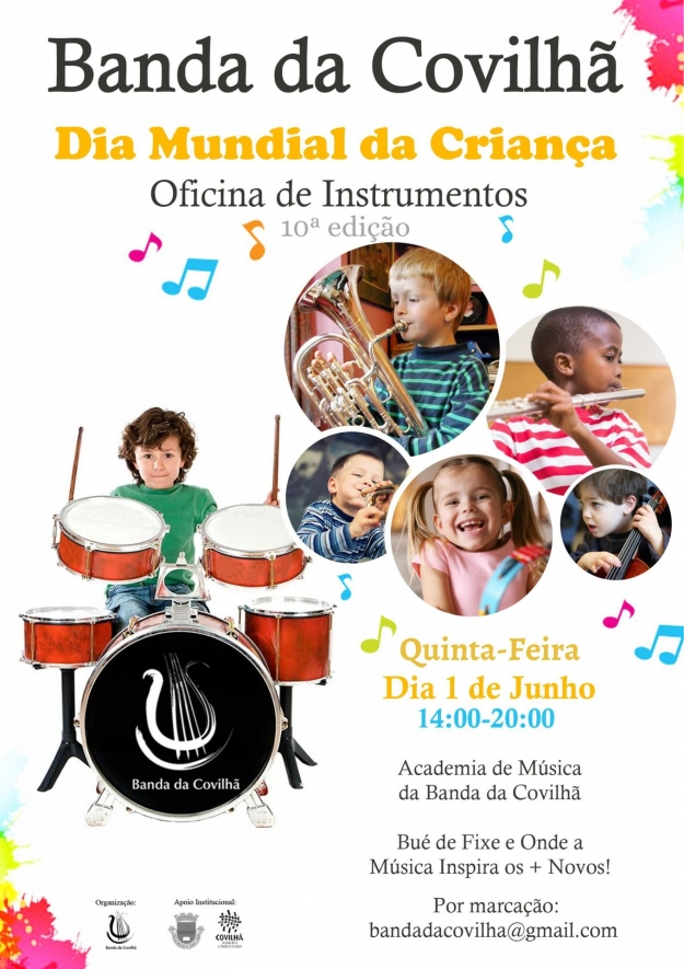 Como forma de celebrar o Dia Mundial da Criança, a Banda da Covilhã dinamiza a 10ª edição da Oficina de Instrumentos Musicais na quinta-feira 1 de junho entre as 14h e as 20h.A atividade é gratuita mas carece de marcação para bandadacovilha@gmail.com