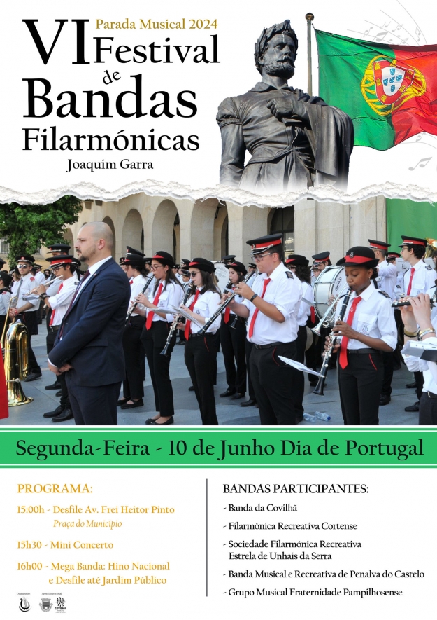 Banda da Covilhã organiza VI Festival de Bandas Filarmónicas Joaquim Garra - Parada Musical - 10 de junho de 2024
