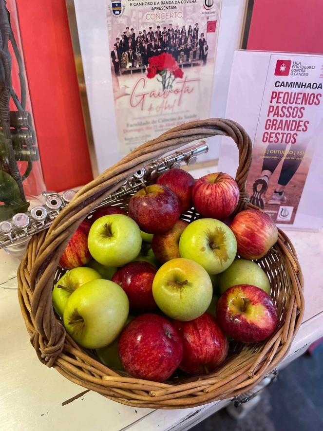 A Banda da Covilhã lança hoje, dia 16 de outubro de 2024 – Dia Mundial da Alimentação mais um projeto intitulado: “lanches saudáveis = 1 maçã”. Consiste em ter na sua sede social sempre um cesto com maçãs, para que as crianças e jovens que frequentam a Academia de Música da Banda da Covilhã possam comer uma maçã e não uma guloseima. A fruta só traz benefícios, enquanto o açúcar em demasia pode provocar cáries, diabetes, entre outras patologias