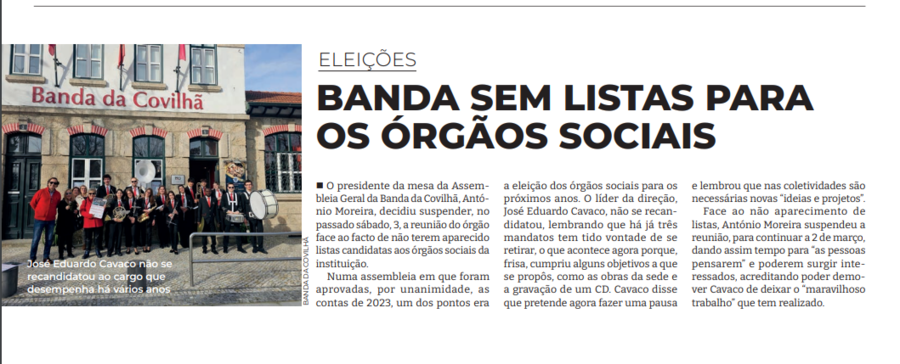 Banda sem listas para os orgãos sociais