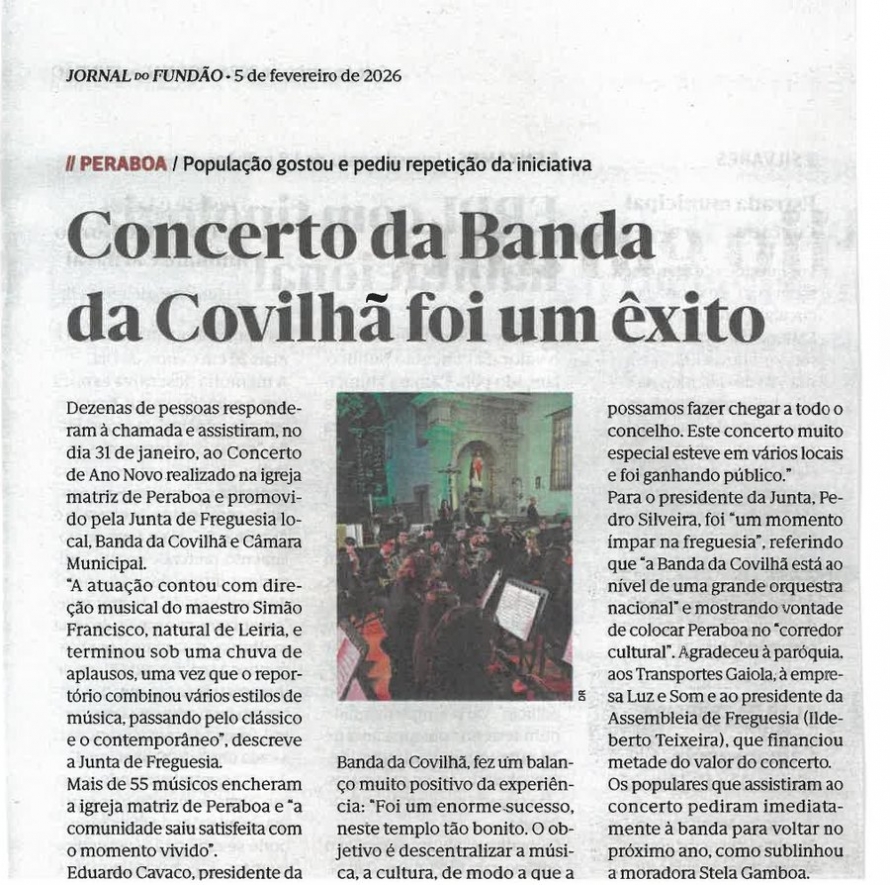 Banda da Covilhã apresenta Concerto de Ano Novo em Peraboa